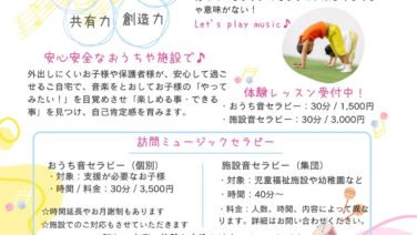 音楽療法 3月29日(金)音あそび♪親子でワークショップ 音あそび 親子でワークショップ at神戸市北区 桜の宮地域福祉センター 発達のゆっくりな未就学のお子様と保護者の方が参加できる、ワークショップをします! ☆時間 9:30~11:40 (何時に来てもOKです) ☆場所 桜の宮地域福祉センターread more... 2024.03.11 音楽療法ブログ児童イベント